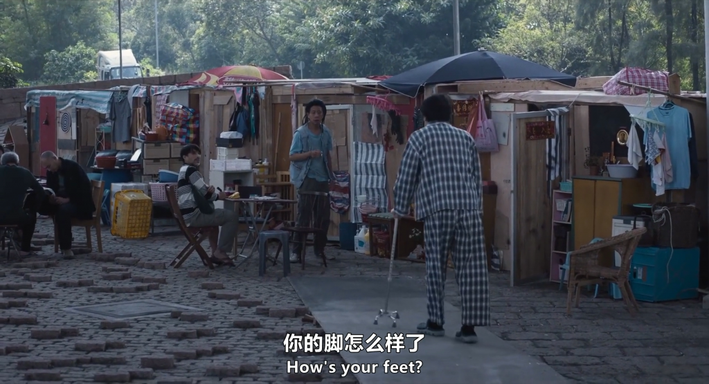 片中,吴镇宇饰演的辉哥作为露宿者,游荡在深水埗,是香港最底层的人。监狱工作人员告诉出狱的阿辉不要再进监狱了。他想摆脱令人窒息的环境,但却无奈地说,外面只是一个更大的监狱罢了。在香港这个节奏飞快、由混凝土构筑起来的城市里,一幢幢建筑拔地而起,渐渐把他们挤出原本属于自己的狭小天地。