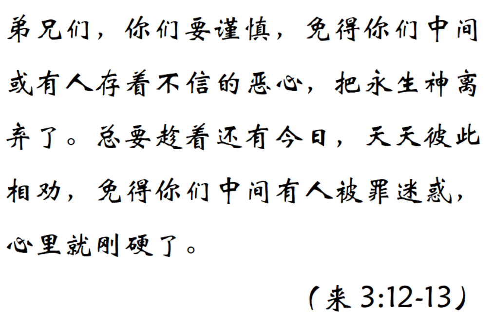 因为罪可以迷惑人,罪也可以让心灵盲目。有些罪的盲点可能藏在人灵里最黑暗的地方,因此需要我们彼此帮助,让这些黑暗显明。