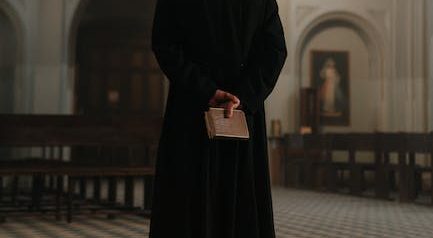 在右侧的房间角落里,伫立着一只衣架,上面挂着一件牧师的圣袍。