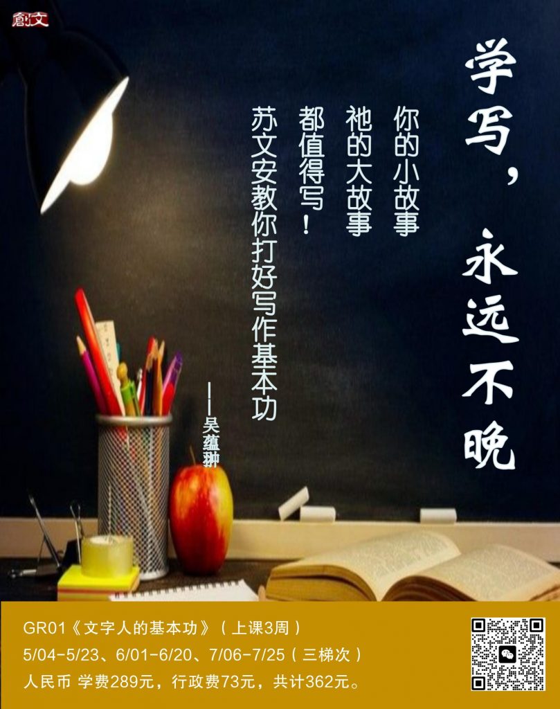 我原来有“写”的恩赐。初中时喜欢读各类书,通过书中故事品各种人生,时常在脑海里再现并重组它们,还喜欢摘抄好词好句,因此作文常被语文老师当范文读给全班同学听。那时就萌发了写作的念头,可是感觉自己经历单薄,不足书写人生这部大书,非得攒足了故事方能下笔。现在人生故事有了,GR01课程于我正像久旱逢甘霖。