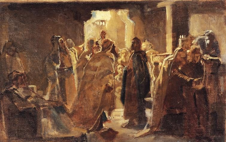 刚才来会堂的路上,看见一圈人,围着几个穿着外袍的长老和祭司。十天前,几个加利利人去耶路撒冷献祭,与当地人发生冲突,将污秽了的祭物带入圣殿中。这事在犹太人中引起轩然大波,引发了骚乱。祭司们认为用污秽的祭物献祭,是大逆不道之事。彼拉多派罗马官兵平乱,杀了这几个加利利人。祭司们和众人激烈地议论这件事,说耶和华神降罪,取了这几人的性命。