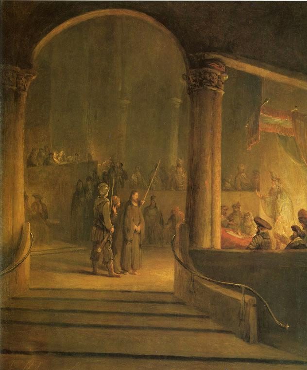 梳洗过后,马勒古松了一口气,坐在椅子上,想起被抓回来的耶稣正在府邸受审。内心有什么挣扎要突破的马勒古随即束腰出门,决定去看一下这位弥赛亚现在正经历着什么。