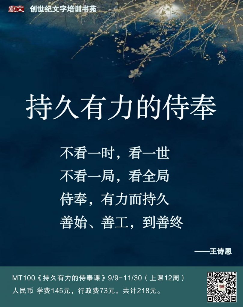 这也正映照了创文的核心理念:工人先于工作,作者重于作品,真诚胜于一切。神看重我们的生命和我们这个人,大过于我们为祂做了什么。因此,“立”永远都是神在工人生命中的工作,超过工人可以服侍多少,结出多少果子。