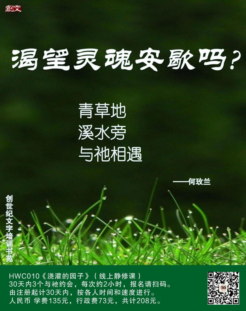 青草地,溪水旁,与祂相遇。欢迎查看文末海报,了解HWC010《浇灌的园子》。