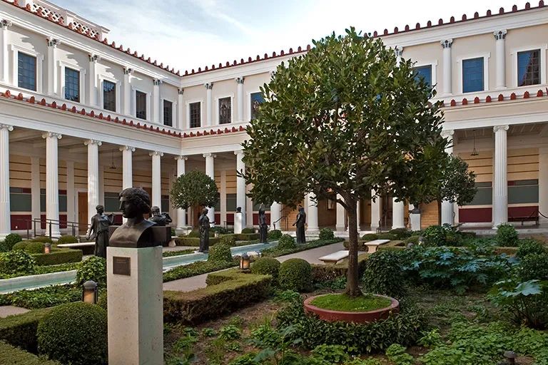 前阵子我们全家去参观北美南加州著名的盖蒂别墅博物馆(Getty Villa),这坐落于马里布海岸线山坡上的建筑物,以罗马帝国时代的贵族别墅帕皮里(Villa dei Papiri)为蓝本,并参考庞贝古城等建筑设计,还原当时罗马帝国上流社会建筑与庭园之美。馆内希腊、罗马与伊特鲁里亚文明的珍藏也是西海岸顶级的艺术瑰宝,每年都吸引来自世界各地的游客造访。