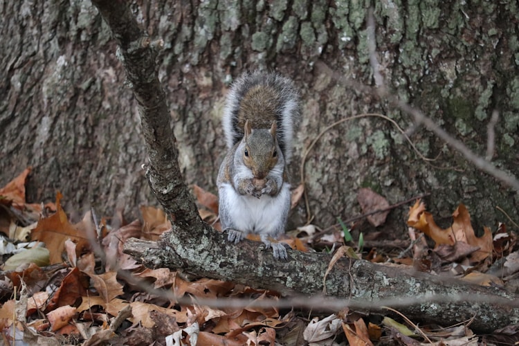 我常看见它们叼着橡实,在落叶堆中小心翼翼移动,警觉地四处张望,确定没有威胁后,才用前爪挖开落叶泥土,将橡实埋入。它们会拍拍土,用鼻子压一压,仿佛在立一个秘密的记号。偶尔发现有人驻足观看,还会“表演”假装挖洞——动作一丝不苟,却什么都没埋进去。那份狡黠与灵巧,让人忍不住莞尔,也不禁惊叹这些小生物的聪慧。