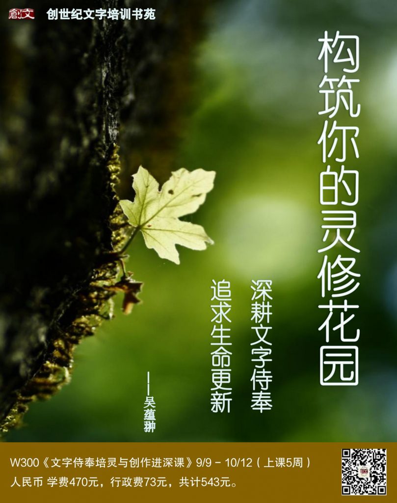 为了确认文字服事的呼召,今年夏天,我报名了W300《文字事奉培灵与创作进深课》。很感恩,我那段时间本不方便参加这样密集型的培训课程,可神却奇妙地预备了合适的时间、空间及充足的资金让我能参与。而当我上完课程,回首过往,我发现,问题的答案其实已经有了。