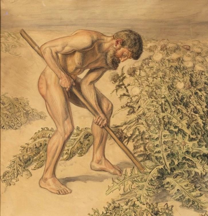 伊甸园注视着他们远去的背影,他们不敢回头,从此不再是鸟语花香,而是荆棘蒺藜。日头也一改以往的温柔,脚踏之地尽都是他们的,却又一无所有。