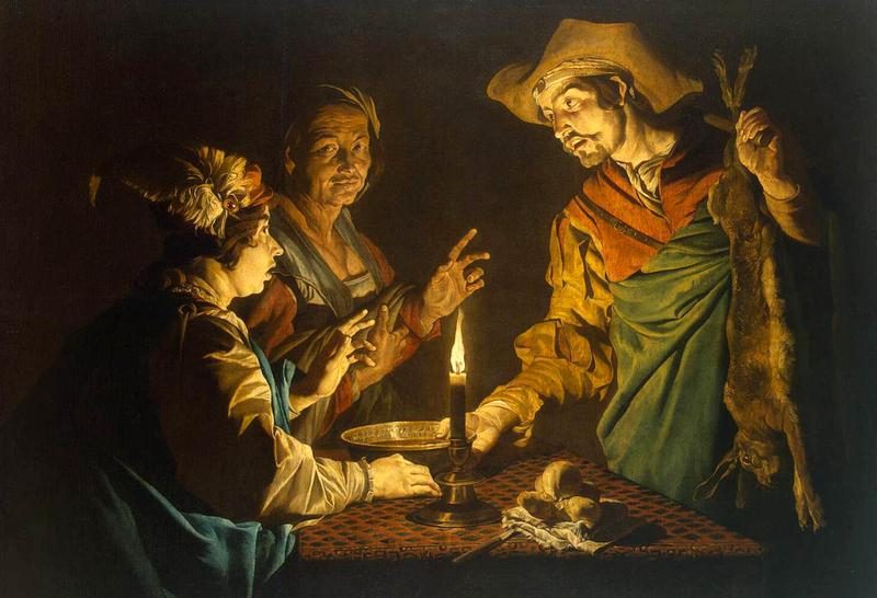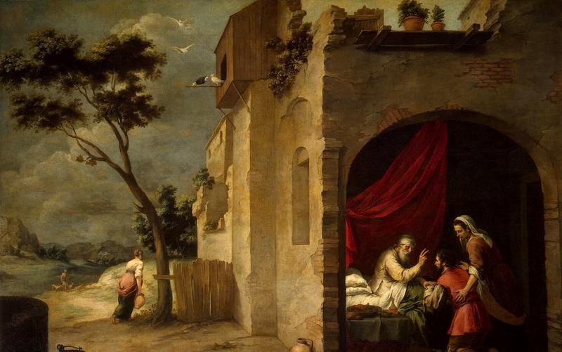 里面父子俩又说了几句话,接着我听到咀嚼的声音,倒酒的声音。我心中着急,求神让老大找不到野物,找到也射不中。以撒吃得那个慢啊,我自责,太急了,羊羔没煮烂,他嚼也嚼不动。