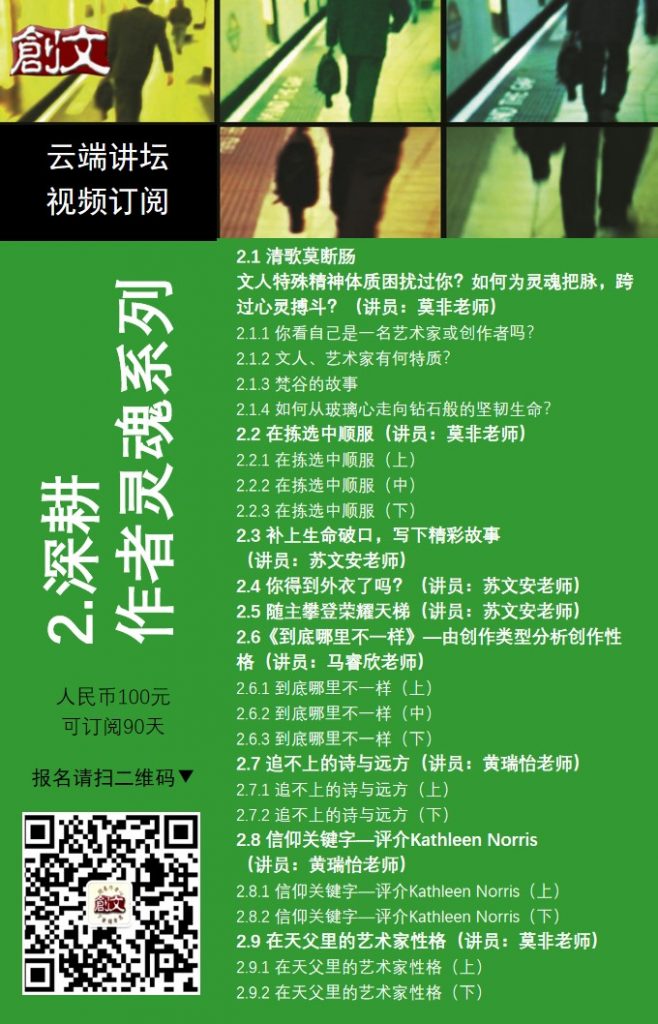 “文人气质”是否困扰过你?为灵魂把脉,跨越心灵搏斗,欢迎有兴趣者查看文末海报,了解《云端讲坛系列2:深耕作者灵魂》课程。