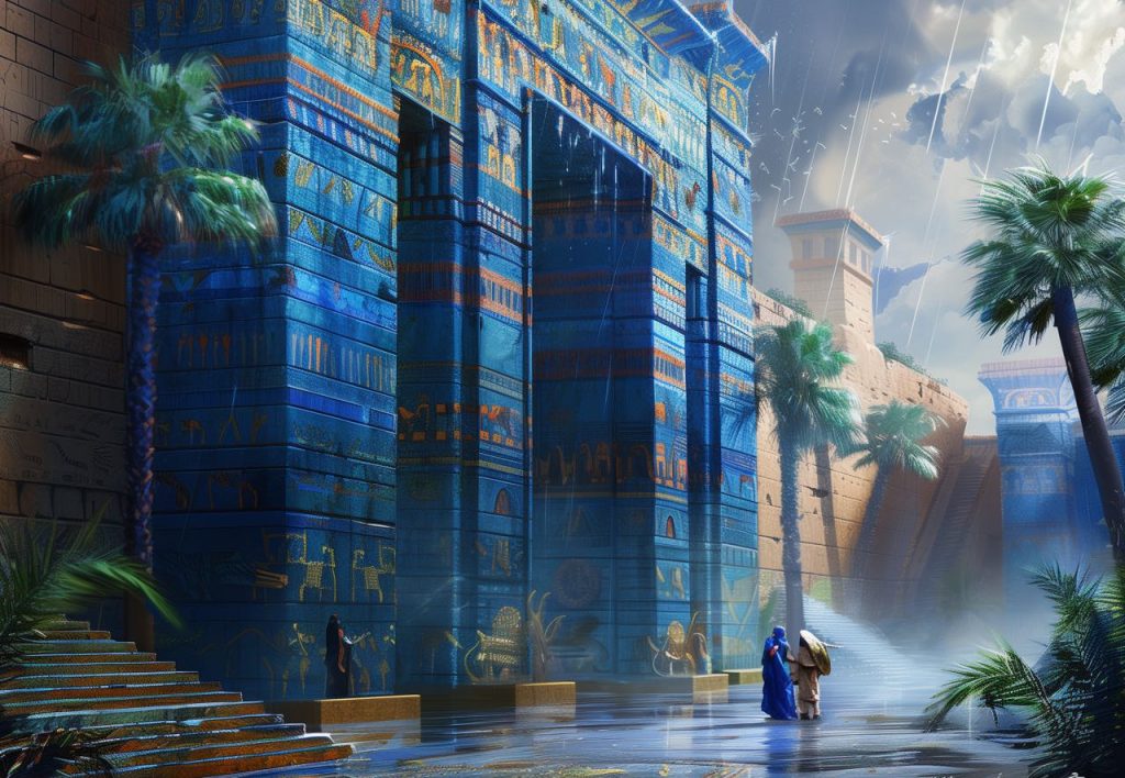 傍晚,巴比伦琉璃蓝色的宫殿之上,我如往常信步。夜幕低垂,无论宫内还是宫外的建筑物都亮起了一盏盏明灯。手凭栏杆,瞻仰宏伟的宫殿和宫城之余,我不禁仰望天空,看到更绚烂浩瀚的银河与星宿,是谁造了它们?它们又在述说谁的威严和荣耀?