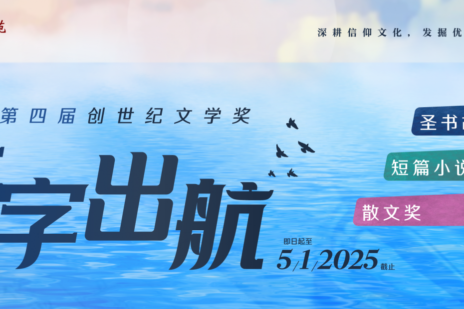 第四届“创世纪文学奖”征文大赛已开启。本届主题为“文字出航”,鼓励写作者以笔墨远航,书写祂在深水中行的奇事。比赛将于5月1日截止收件,有意参赛者敬请把握时间,投递出您的作品。