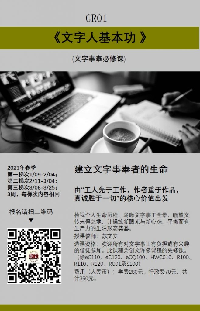 但是,渐渐地,我感到手中的笔越来越沉重,也从创文公众号上对文字侍奉有了点了解,便开始怀疑起自己是不是要专注在写上面。适逢发现创文推出的云端讲座系列,因为学习时间自由,课程期限长,就毫不犹豫地报名了。